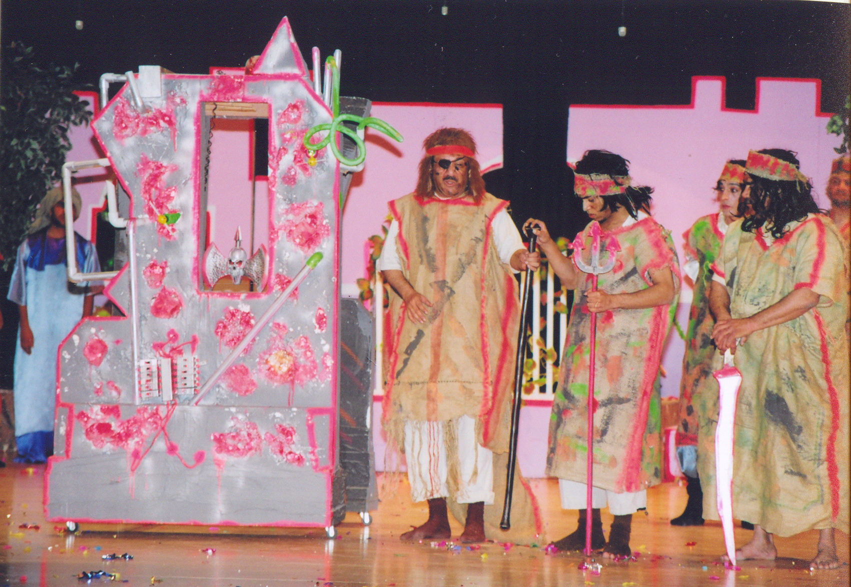 تدور حكاية العرض التي كتبها سالم الحتاوي وأخرجها محمد سعيد السلطي حول الثيمة المعهودة والأثيرة في أعمال مسرح الطفل، ونعني فكرة الصراع بين الخير والشر وما تطرحه مفاصل الصراع من انتصار للقيم النبيلة وتكريسها، وهي حكاية أفلح سالم الحتاوي مؤلفا في تخليصها من التناول السطحي الفج الى حد كبير، برغم ما شابها من خطابية مباشرة في لحظات لم تكن في صالح العمل على قلتها· وجاءت معالجة المخرج محمد سعيد السلطي موفقة الى حد كبير في تقديم عرض استعان بعناصر الإبهار واستحوذ على تفاعل الجمهور الصغير، وحتى الكبار، واندماجه في العرض، وحتى المشاركة فيه احيانا، مستنداً الى خبرة وبراعة الفنان عبد الله صالح، ممثلاً للدور الأبرز ‘خرابوه’ وكاتباً وملحنا لأغاني العمل التي اسهمت في تلوين العمل وتقريبه الى الجمهور بتوافقها مع روح الطفولة وتوظيفها الموروث الشعبي، وجاءت مشاركة الفنان المجتهد مروان عبد الله في دور ‘المهرج’ لتكون المحور الأساسي في شد أوصال العمل وبناء تلك الصلة الحميمة مع المتلقين الصغار· وفي الإطار نفسه كانت مشاركة الفنانين سعيد عبد الرحمن وغانم ناصر وعبد الرحمن محمد، فضلاً عن الفنان حسن يوسف في دور ‘جاسم’، الطفل الذي يبحر برفقة المهرج، الذي كان بصورة أخرى بمثابة الراوي الذي اتكأ عليه المخرج كثيراً في معالجته الدرامية، إذ تبدأ الأحداث من غرفة الألعاب ‘الدمى’ لتستعرض حكاية مملكة آمنة يحكمها حاكم عادل، يسودها السلام حتى يقدم خرابوه وعصابته من كهفهم المظلم بدلالته الرمزية الواضحة، ليعيثوا فسادا فيها، بعد ان يرغموا ‘ صنوع’ المخترع العبقري على اختراع آلة تجعل من يرغم على دخولها شخصاً شريراً على شاكلة خرابوه وأفراد عصابته الذين يحبسون الملك ويستولون على ابنه فارس، بعد ان احتجزوا المخترع، وأشاعوا الفساد في المملكة الآمنة وشعبها·